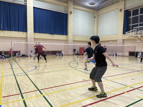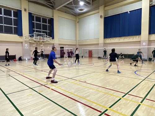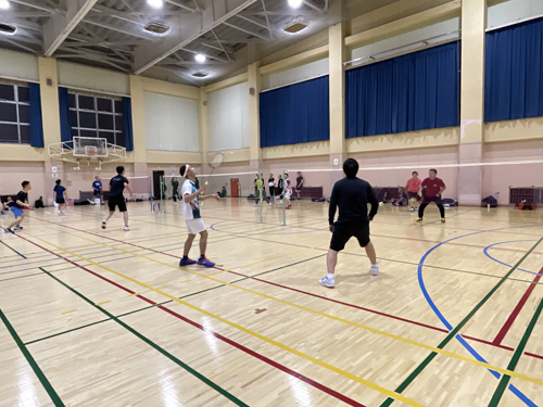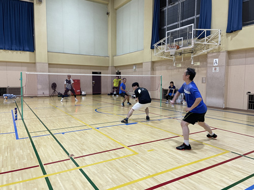 男性新メンバーの4名さんはこちらでダブルス試合してもらいましたが、楽しくバドできたでしょうか。(また参加してくださいね~)