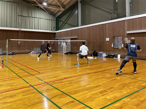 「レギュラークラス」は、男性7名が1コートでダブルス試合をしました。