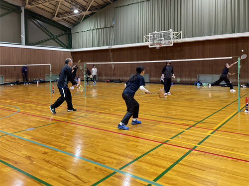 「ハイクラス」は、男性4名+女性2名の6名が1コートでダブルス試合をしました。