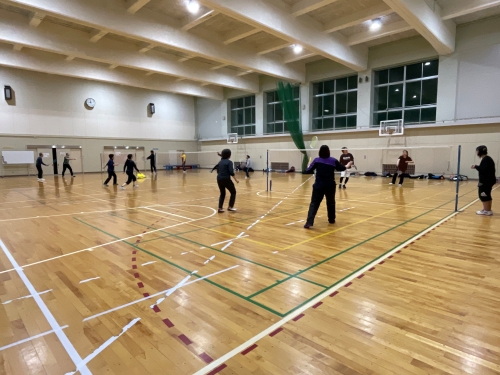 新メンバーのNさんは管理人の班で一緒に、球技スポーツの経験があり動きは良かったので打ち方を中心に練習しました。