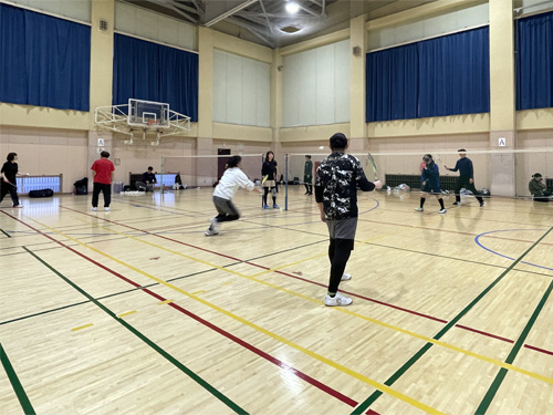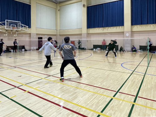 「ハイクラス」は、男性10名+女性3名の13名が1or2コートでダブルス試合をしました。