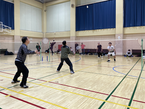 「レギュラークラス+(プラス)」は、男性5名+女性1名+中学生2名の8名が1コートでダブルス試合をしました。