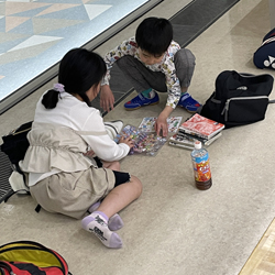 後半、二人がラケット持って遊んでいたので簡易ネットを張って管理人がシャトルを手投げして二人が交互に打ち返して遊んでいました。
