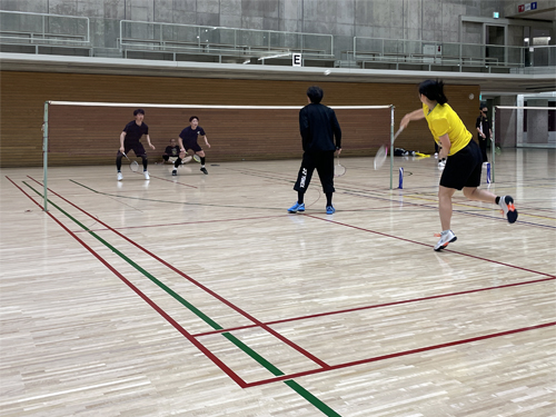 「レギュラークラス」は、男性3名+女性1名の4名が1コートでダブルス試合をしました。
