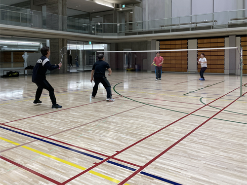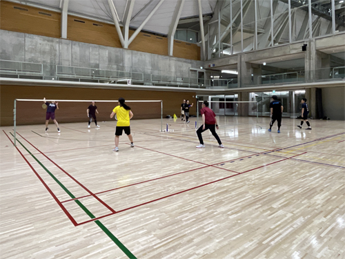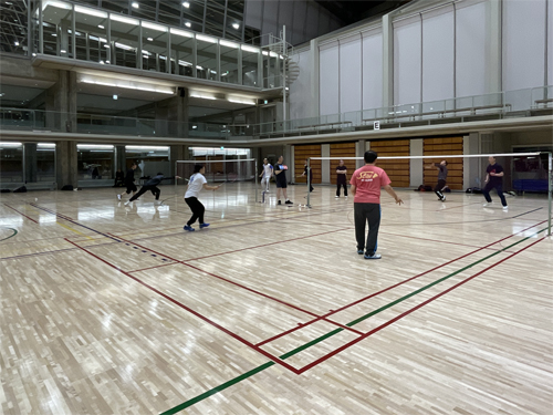 「レギュラークラス+(プラス)」は、男性7名+女性1名の8名が1コートでダブルス試合をしました。